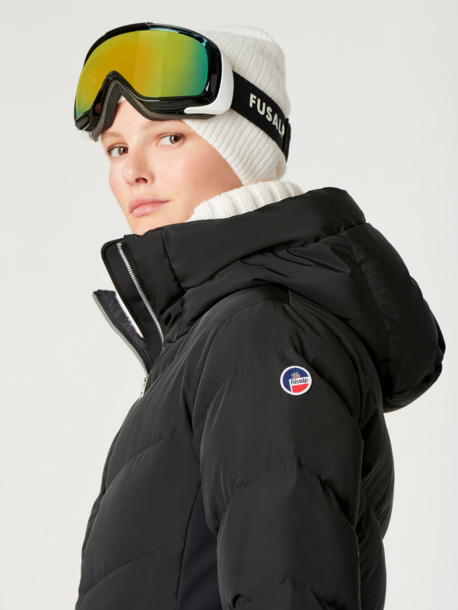 De Fusalp DELPHINE II ski jas, met zijn retro design, kan zowel op de skipistes als in de stad gedragen worden. Het is gemaakt van technisch materiaal met een hoogwaardig winddicht, ademend en waterafstotend microporeus membraan voor optimale bescherming en thermisch comfort.