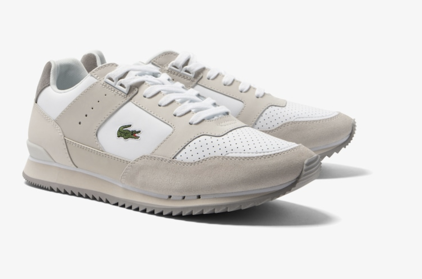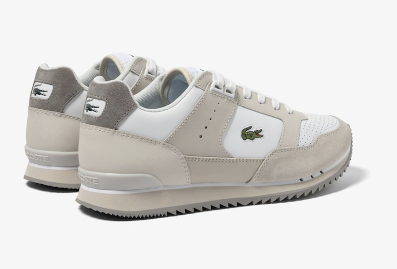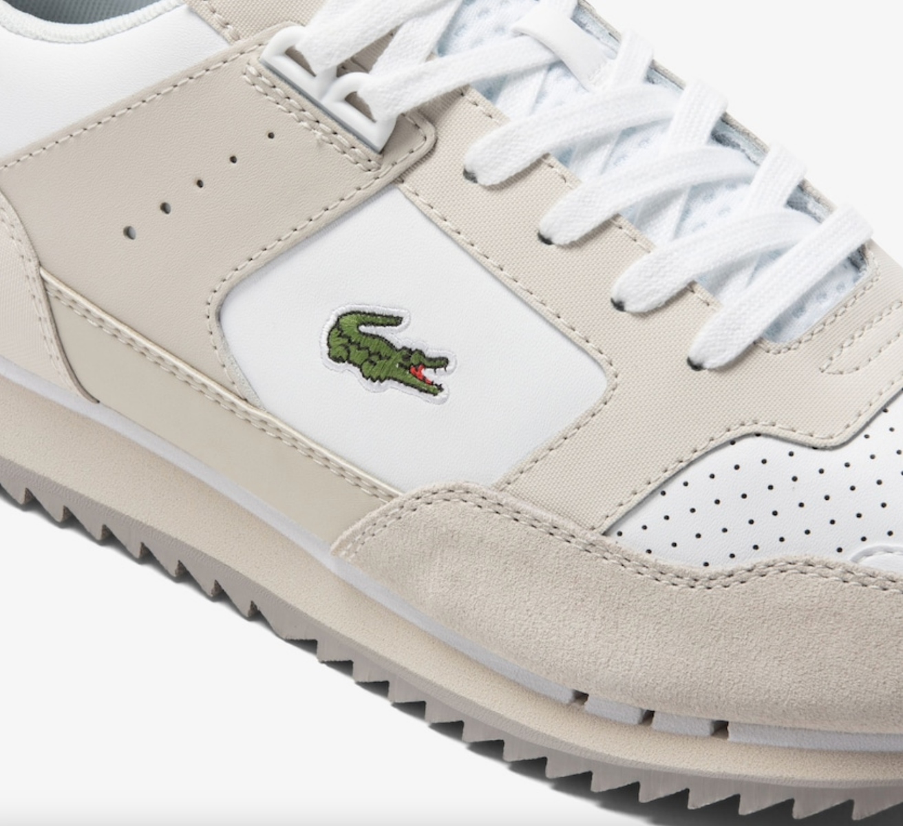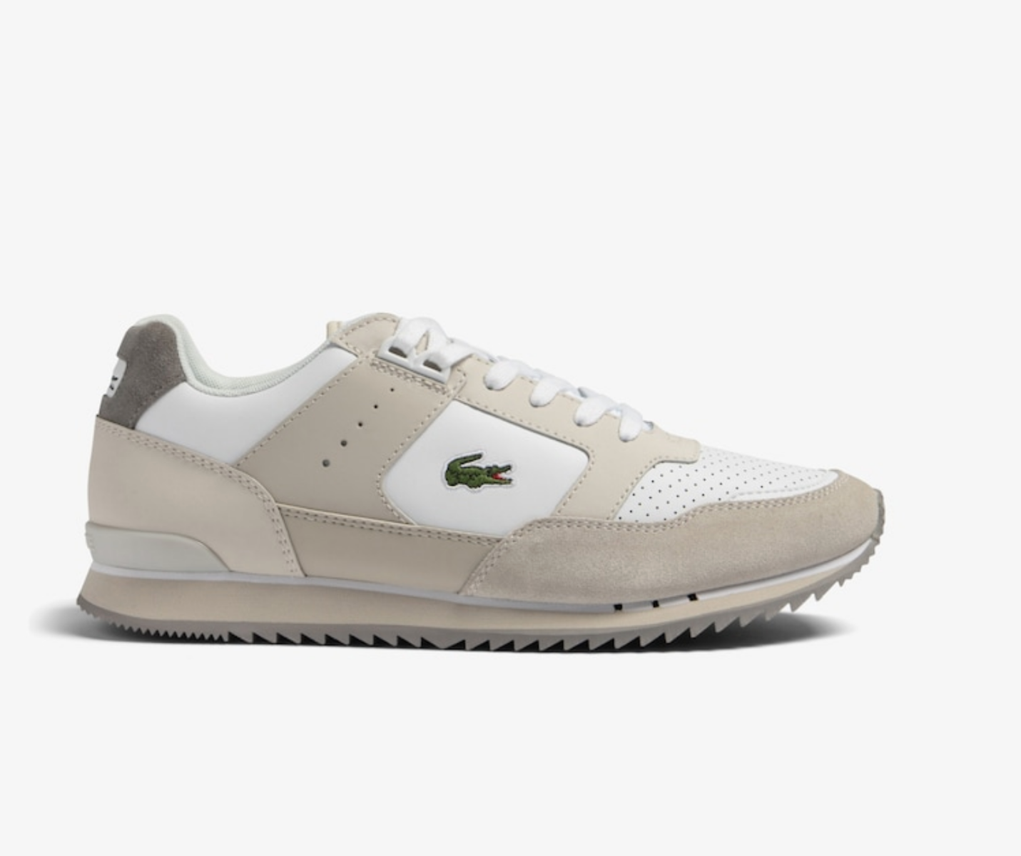 Met een knipoog naar het tenniserfgoed van Lacoste zit de Partner Piste vol vintage vibes. Contrasterende getextureerde panelen en kleuren zorgen voor een statement look. Loop voorop. Bovenwerk van leer, suède en synthetisch materiaal: Retro look. Geïnspireerd op een hardloopmodel uit het archief: