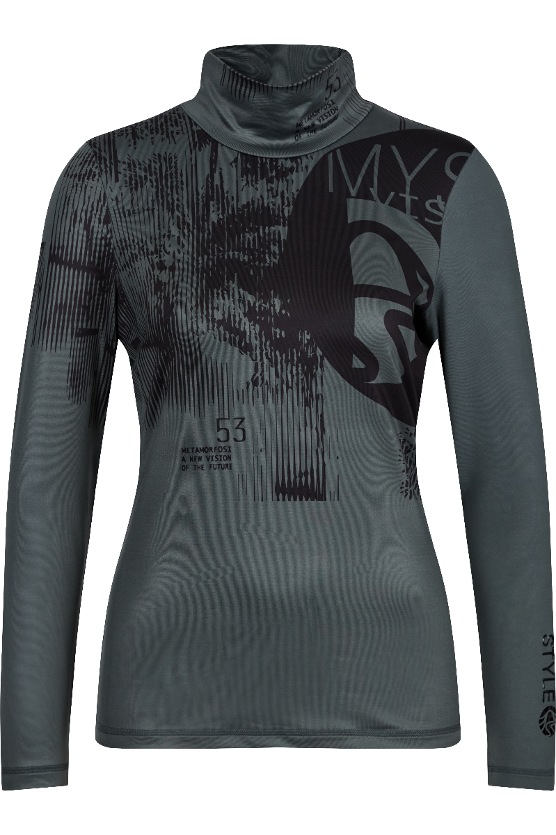 Deze pully is sportief en heeft een getailleerde pasvorm. De eerste laag is ontworpen met een kleine opstaande kraag die tot boven de borst geopend kan worden. Bijzonder is de transfermotief print die naar boven loopt. Dit is te zien op de mouwzomen en in het onderste gedeelte van de voorkant. . En op de effen achterzijde is ook transfermotief aangebracht. Een absolute must-have voor onvergetelijke dagen op de piste.